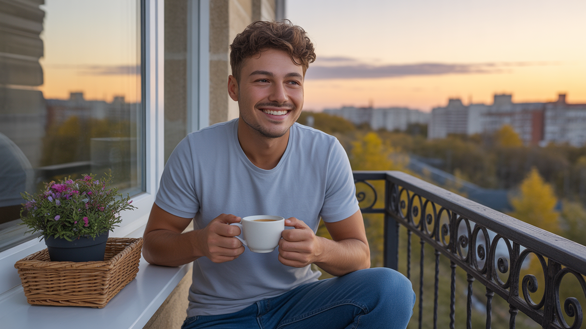 Это изменило его жизнь — появилось больше свободного времени и стабильный доход. Сняв свою небольшую однокомнатную квартиру, он наполнил её уютом и даже завёл суккулент на подоконнике. Вечерами занимался спортом и общался с новыми знакомыми.