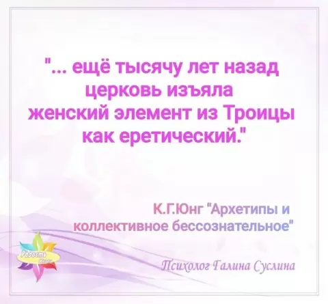 Юнг указывает на множество примеров, подчеркивающих эту двойственность. Например, монах Николай увидел Бога как величественного Отца и одновременно как величественную Мать. Это восприятие стало для него странным и даже еретическим, так как церковь на протяжении веков отвергала божественный женский аспект.